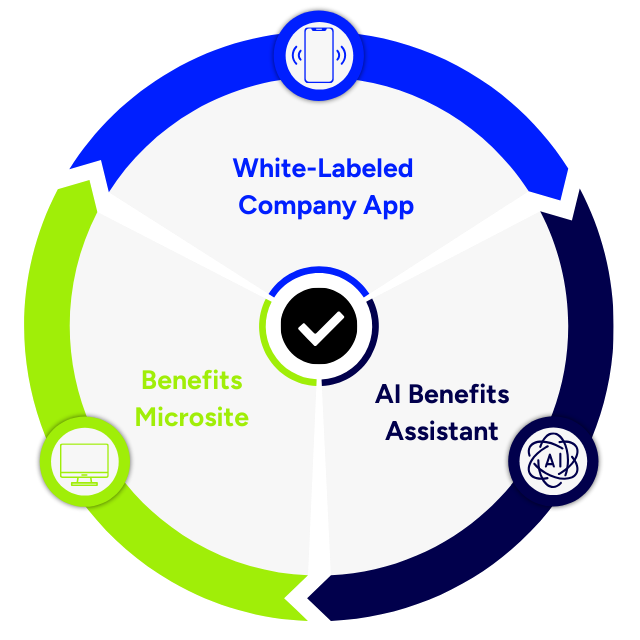 What’s the solution: Empower your workforce with a White-Labeled Company Benefits App that unifies all benefits, tools, and communications in a company-branded, easy-to-find, mobile-first experience—available in the app stores under your company name.